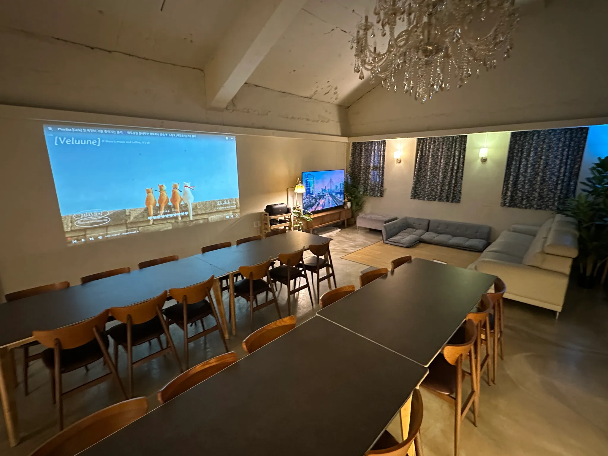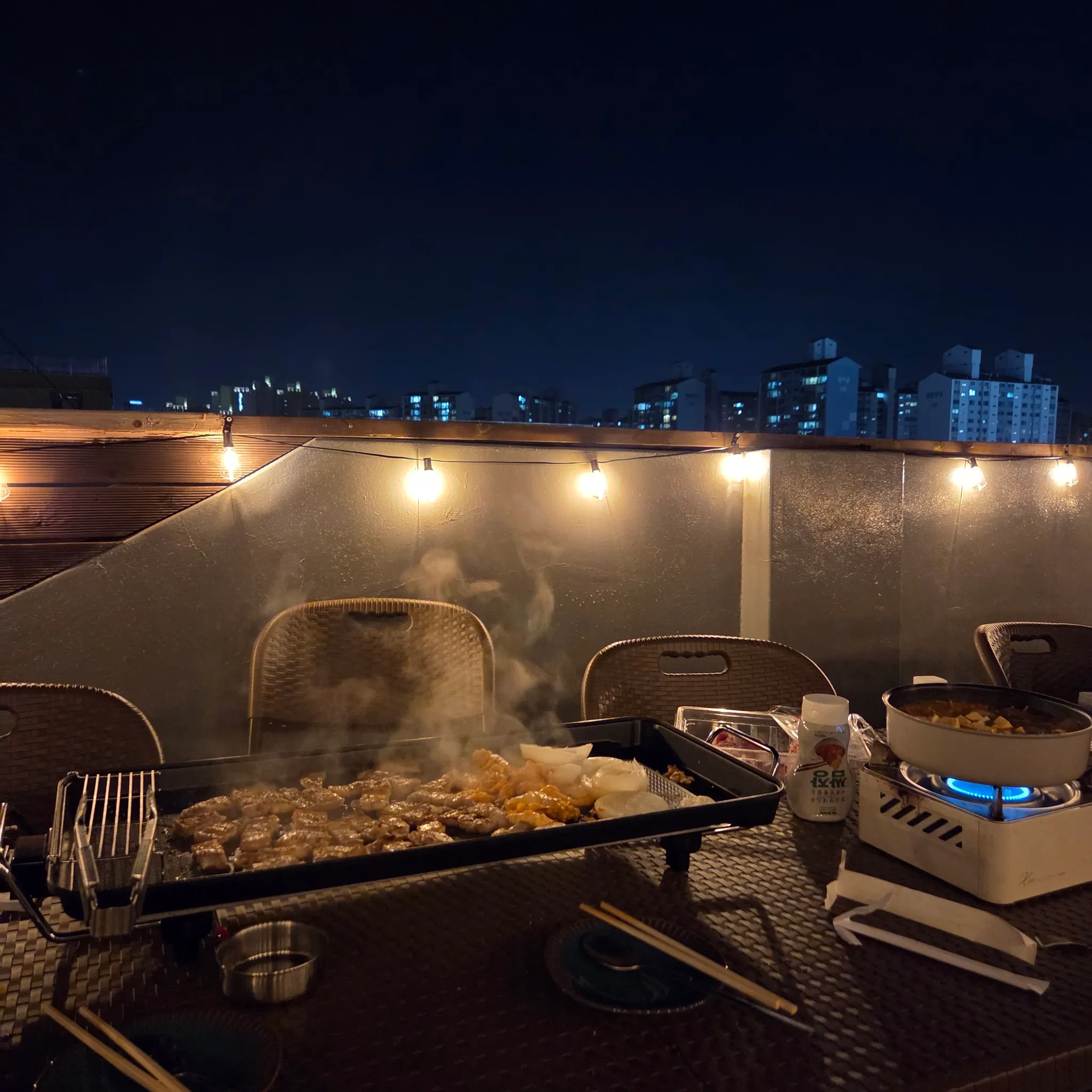 탁 트인 루프탑과 따뜻한 실내가 어우러진 여유로운 모임 장소입니다.