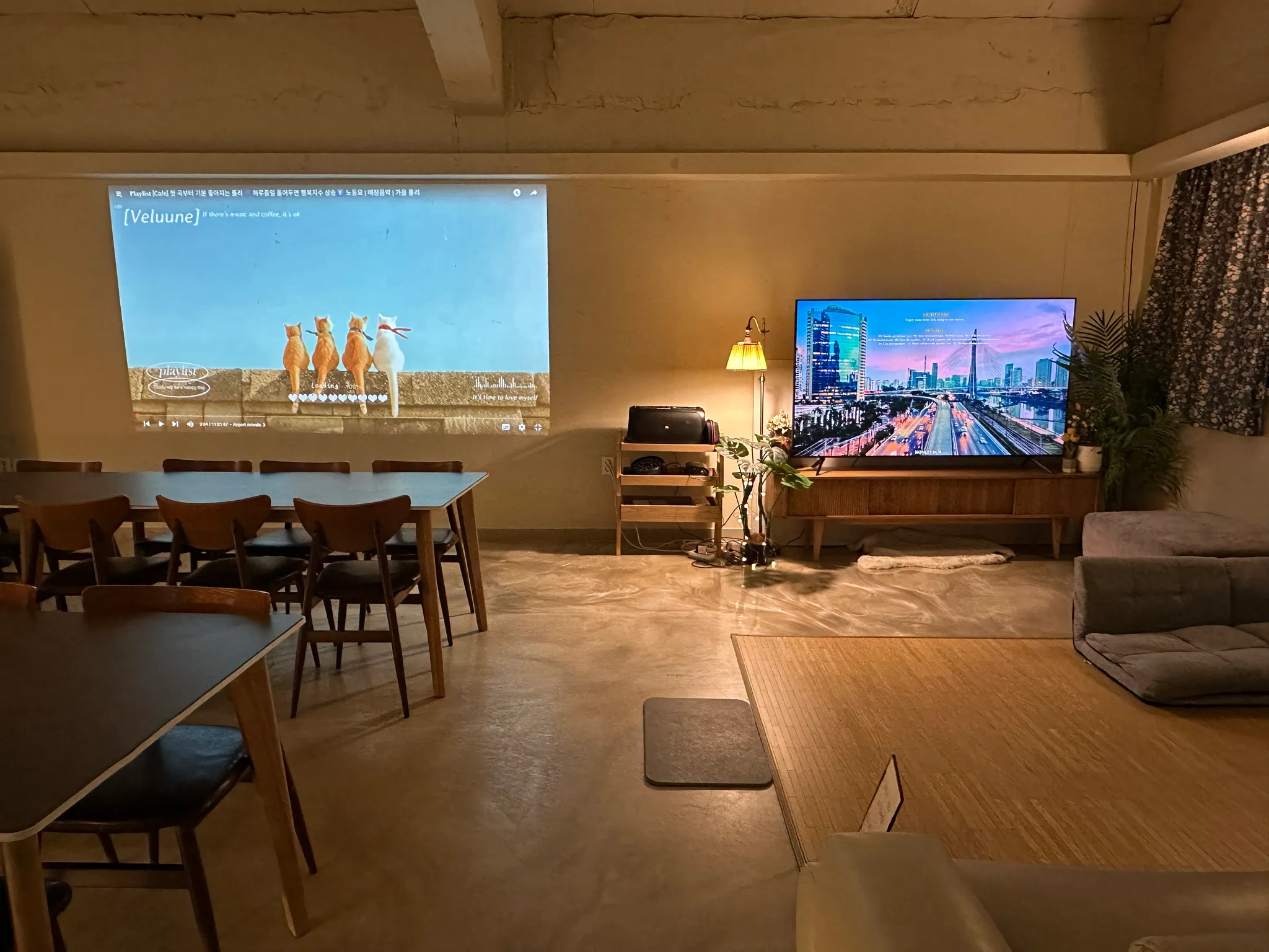75인치 스마트 TV, 빔프로젝터, 고음질 스피커 | |