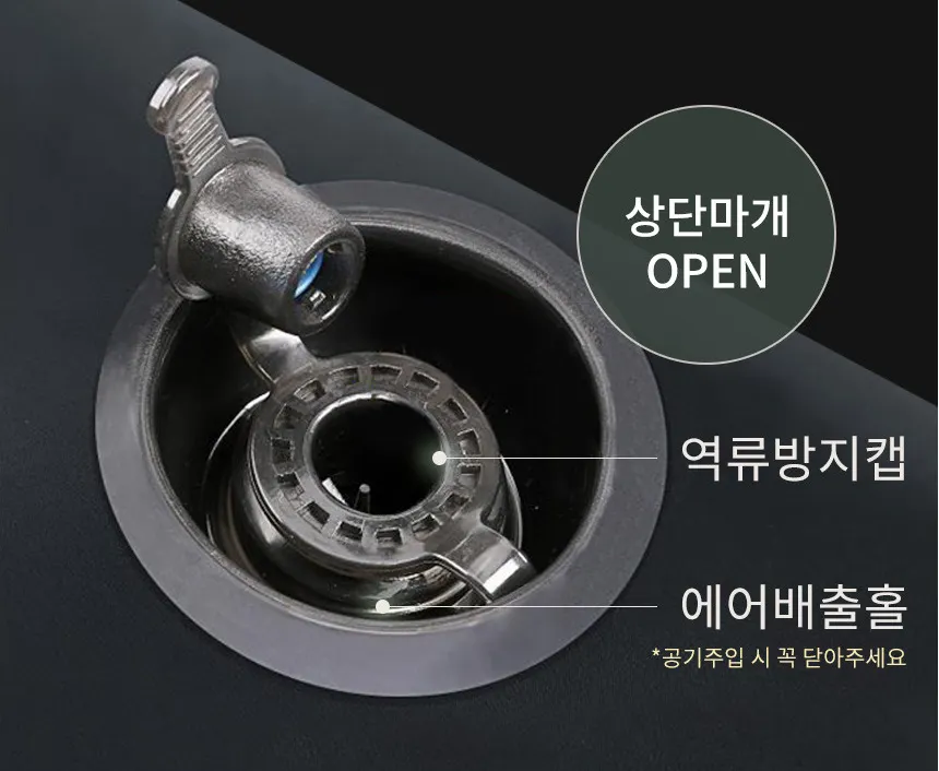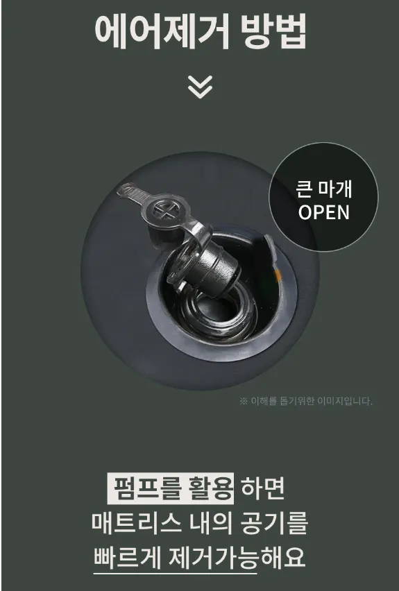 펌프 [공기배출구]의 노즐을 마개와 연결해주세요. *공기 제거가 어려우시면 굳이 제거하지 않으셔도 됩니다