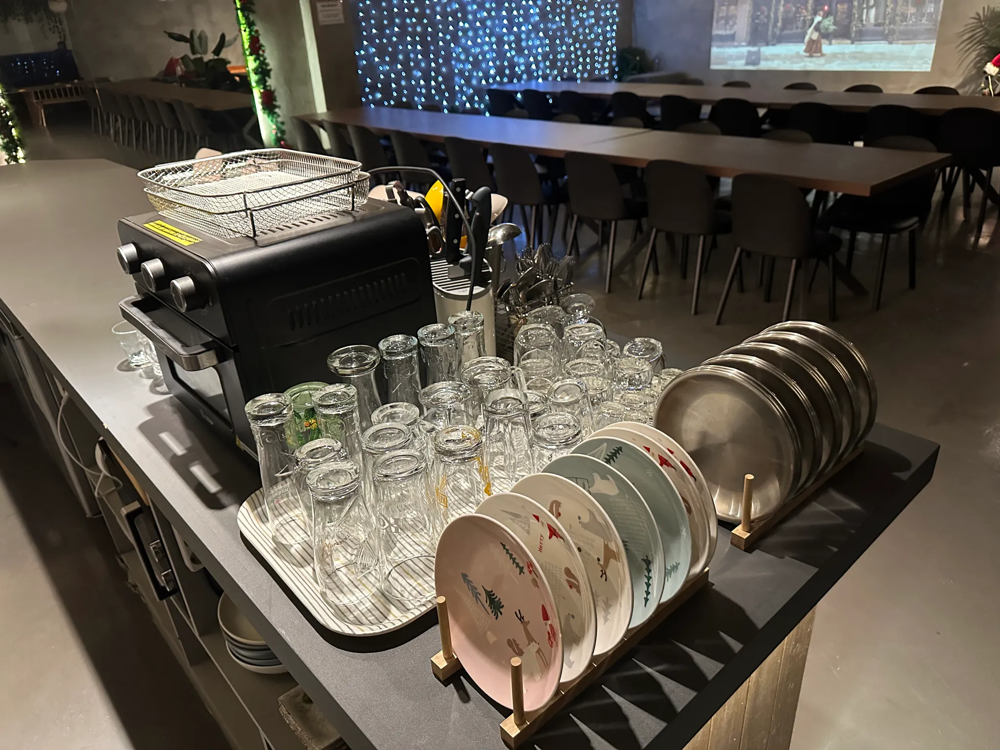 너울라운지에는 모임 중 불편함 없이 이용하실 수 있도록 기본 식기와 주방용품이 충분히 준비되어 있습니다.